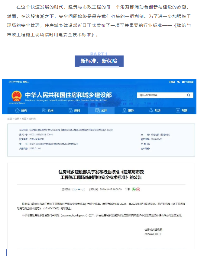 行業(yè)資訊:住房城鄉(xiāng)建設部發(fā)布行業(yè)標準《建筑與市政工程施工現(xiàn)場臨時用電安全技術標準》