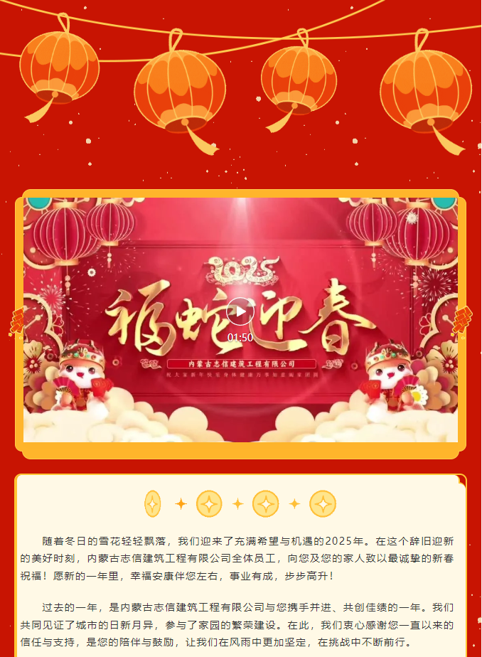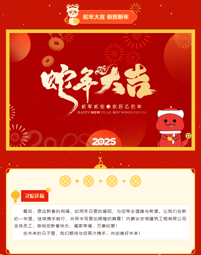 靈蛇獻瑞 喜迎新年 —— 內(nèi)蒙古志信建筑工程有限公司恭祝您新春快樂!