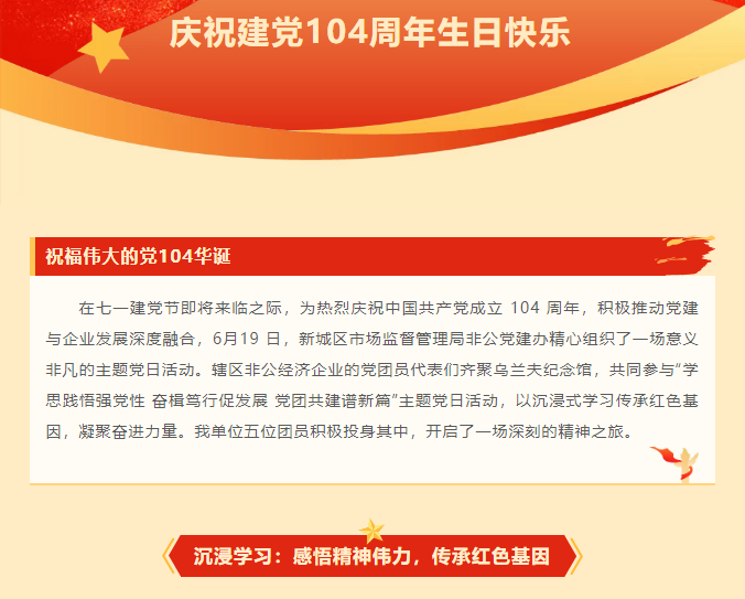 學思鑄魂強黨性 黨團攜手向新程|公司參與新城區(qū)市場監(jiān)督管理局開展黨團共建暨建黨104周年主題黨建活動