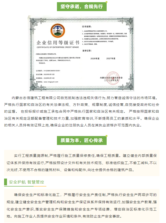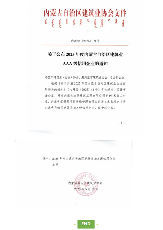 以誠(chéng)信筑基 筑品質(zhì)未來(lái)|內(nèi)蒙古志信建筑工程有限公司榮獲2025年度內(nèi)蒙古自治區(qū)建筑業(yè)AAA級(jí)信用企業(yè)稱號(hào)