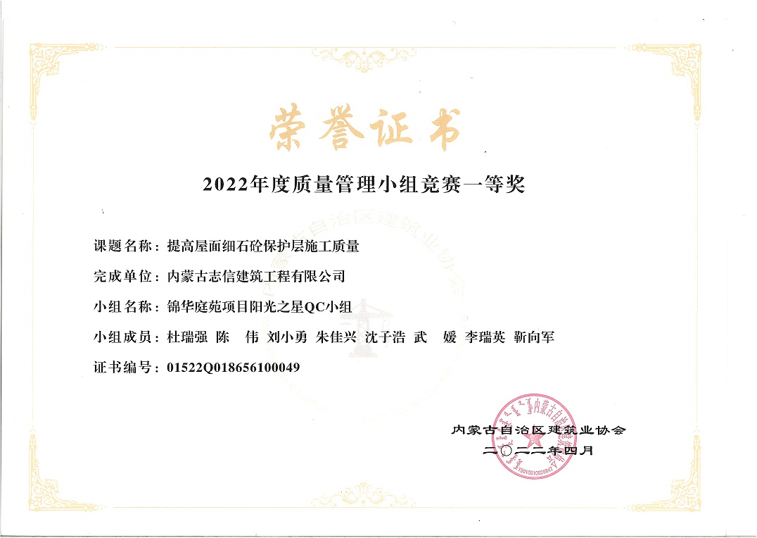 錦華庭苑項目陽光之星QC小組--提高屋面細石混凝土保護層施工質(zhì)量