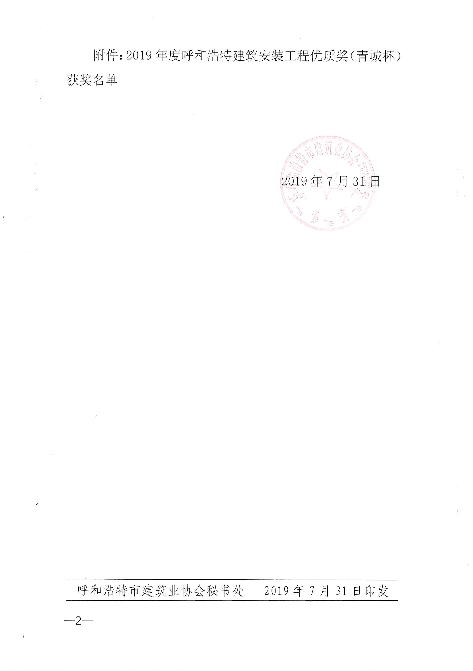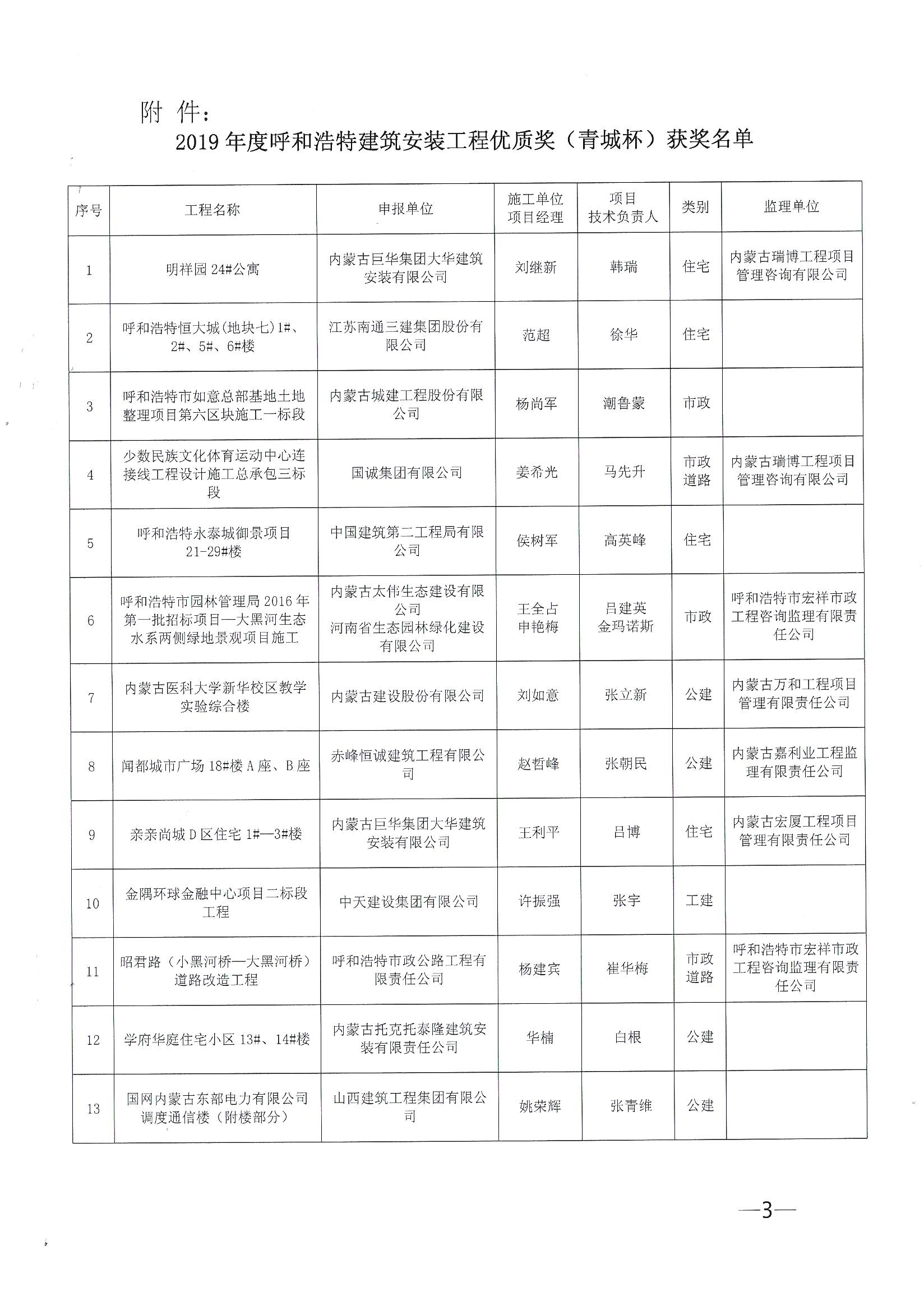 2019年度呼和浩特建筑安裝工程優(yōu)質(zhì)獎(jiǎng)(青城杯)評(píng)審結(jié)果的通報(bào)